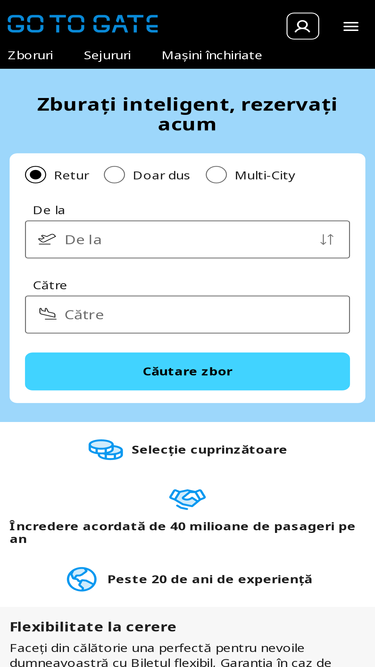 82%La Gotogate, călătoriți inteligent și bucurați-vă de mai multe oferte, zboruri și destinații. Trasferați călătoria la un nivel nou - rezervați-vă biletul acum!