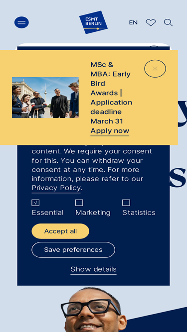 85%esmt offers master’s, mba and executive education across its campus in berlin, various locations around the world, online, and in an online blended format.
