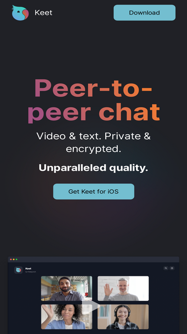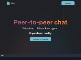76%Keet is a peer-to-peer chat application that allows users to communicate directly with each other. 100% end-to-end encrypted. Never on a server.