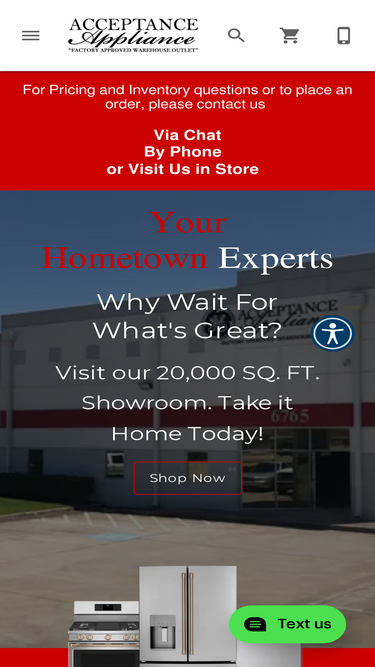 77%Acceptance Appliance is a locally owned appliance retailer serving Houston, TX. We offer a large selection of kitchen and laundry appliances with a highly experienced sales staff.