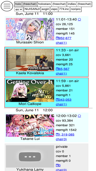 Catch multiple collabs and streams using our multiview tool, find clips and listen to music/karaoke/covers from your favorite vtubers.
