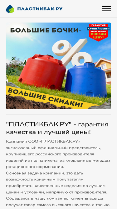 Емкости из полиэтилена объемом до 10 000 литров. Емкости с мешалкой. Подземные емкости. Емкости полный слив (конусные). Дачная продукция. Дорожно-строительная продукция. Емкости (усиленные) и кассеты для сельского хозяйства. Канализация. Мягкие (гибкие) резервуары для воды/нефтепродуктов/агрохимии.
