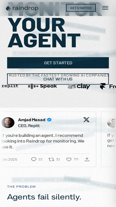 89%We're excited to announce $15M in funding from Lightspeed and leading AI companies to build the monitoring platform for AI Agents.