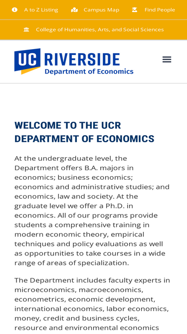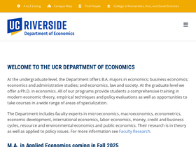 65%WELCOME TO THE UCR DEPARTMENT OF ECONOMICS At the undergraduate level, the Department offers B.A. majors in economics; business economics; economics and administrative studies; and economics, law and society. At the graduate level we offer a Ph.D. in economics. All of our programs provide students a comprehensive training in modern economic theory, empirical techniques and