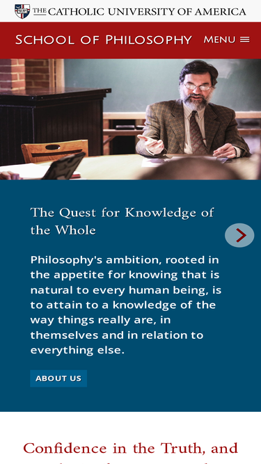 80%Against the widespread skepticism of the age, and the easygoing relativism allied with it, we in the School of Philosophy are confident in the human capacity to achieve truth and to live thoughtfully in its light. Taking inspiration from the great philosophers, ancient, medieval and modern, our community of students and faculty is committed to the pursuit of wisdom, the object of philosophy in the root sense of the word.