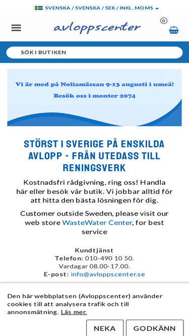 84%Popular categories Popular products Sewage Center – A leading value creator in the sewage industry Svenska Avloppscenter’s vision is to be the leading value creator in the industry. We want our customers to experience that “we do that little extra”. This also means that we have a responsibility to look at each customer’s unique case […]