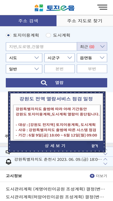 87%부동산 정보 검색에서는 토지 및 건물에 대한 정보를 제공하며, 현재 지도 위치를 기반으로 주택 관련 실거래가 정보를 함께 제공합니다. 국토 이용 현황 분석은 각 지역별 토지, 건축물, 거주자, 중개업자 정보를 분석 하여 제공하며, 국토 통계에서는 관심도가 높은 주요 통계 15종에 대한 정보를 제공합니다.