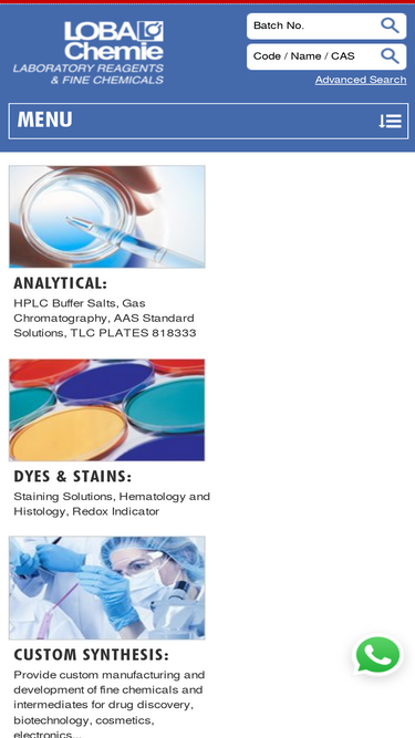 85%loba chemie is a manufacturer of laboratory reagents and fine chemicals for industrial use. our product range includes analytical reagents like hplc buffer salts, gc solvents, aas standard solutions, biological dyes and stains for microscopy, high purity acids, karl fischer reagent and many more. we also offer a wide range of reagents for sciences like nucleosides, nucleotides, amino acids and derivatives.