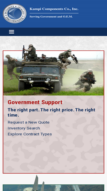 84%Reduce Costs. Military Packaging. Transport Efficiently. Kampi Components is a key military supplier to the U.S. Government for OEM and manufactured