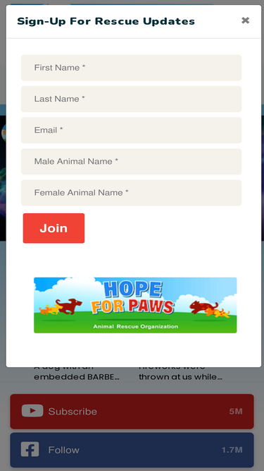 82%Hope For Paws is a 501c3 organization that rescues animals in the Los Angeles area and beyond in an effort to end animal neglect, homelessness and abuse.