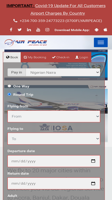 fly with air peace, nigeria's leading airline offering affordable and reliable flights to domestic, regional and international destinations.