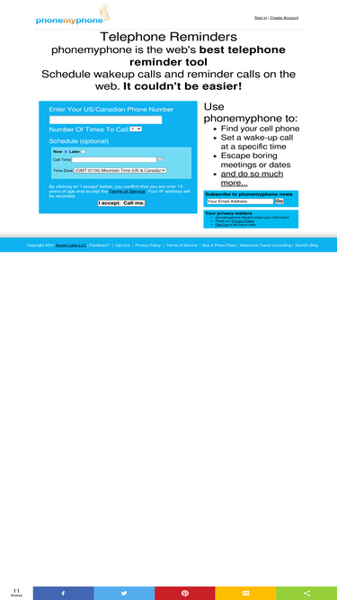 51%phonemyphone is the web's best telephone reminder tool. use it to set a wake up call at a specific time, remind yourself of important events, set a recurring reminder to take medication, escape from a boring date or meeting - and much more!