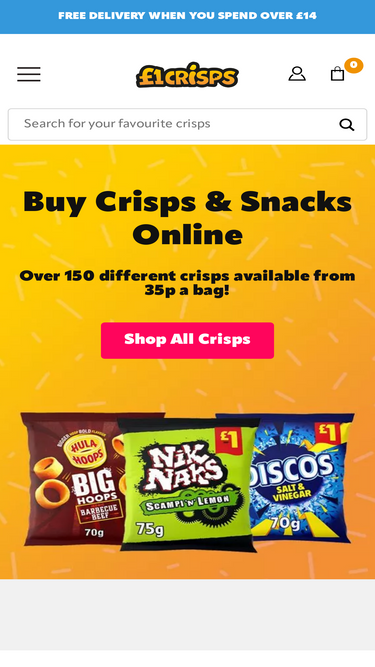 One Pound Crisps is an online website selling crisps and snacks at the best prices with free delivery on orders over £15.