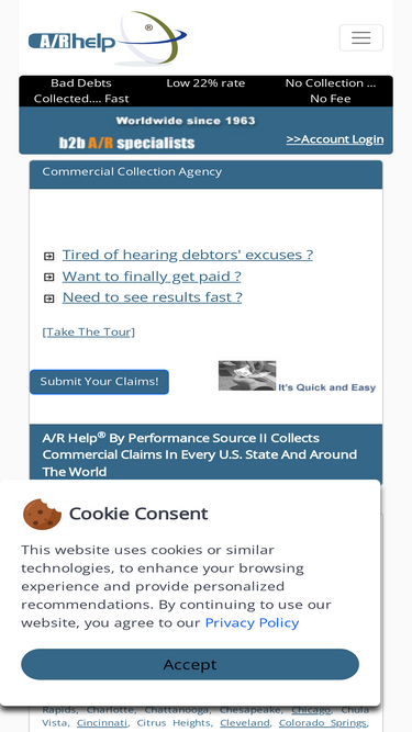 68%premium debt collection agency collecting commercial debts in all 50 u.s. states and around the world. we provide professional commercial collections with proven techniques and strategy that result in a high recovery ratio. call the commercial collection professionals at a/r help today.