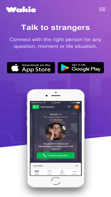 96%What is Wakie? Is Wakie safe? What makes Wakie the best app to talk to strangers? Is Wakie free? These and other questions answered on this page.