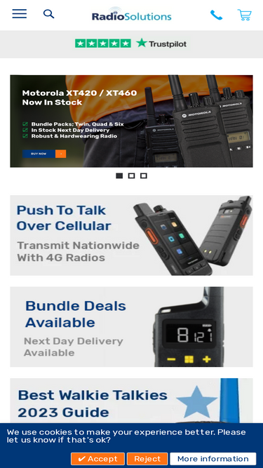 radio solutions uk`s leading supplier of two-way radio equipment stocking everything from general walkies talkies, licensed business radios and accessories.