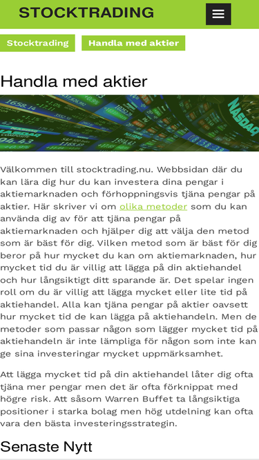 97%Välkommen till stocktrading.nu. Här kan du lära dig att tjäna pengar på aktiemarknaden.