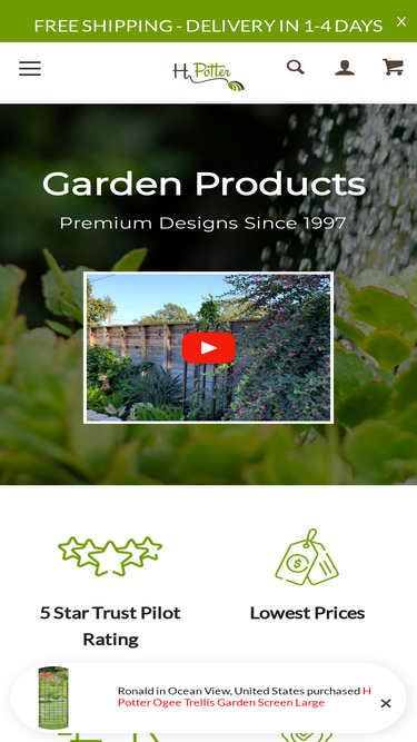 87%Transform Your Garden and Home with H Potter's Planters, Trellises, Window Boxes, Terrariums, Arbors, Wall Art, Side and End Tables, Torches and Lanterns. Where passion meets craftsmanship, we take pride in designing and handcrafting premium garden products that stand the test of time. Elevate your space today!