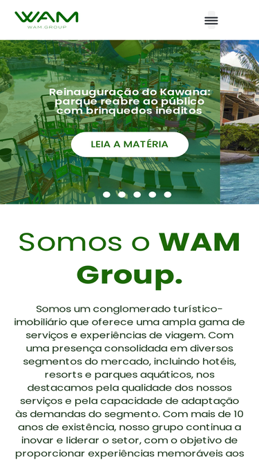 100%O WAM Group está presente em 4 das 5 regiões brasileiras com 11 hotéis e resorts, 4 parques aquáticos e 1 milhão de hóspedes por ano.