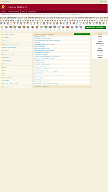 78%forum sur tous les sujets liés aux chats : alimentation, santé, comportement... classement par race et région.