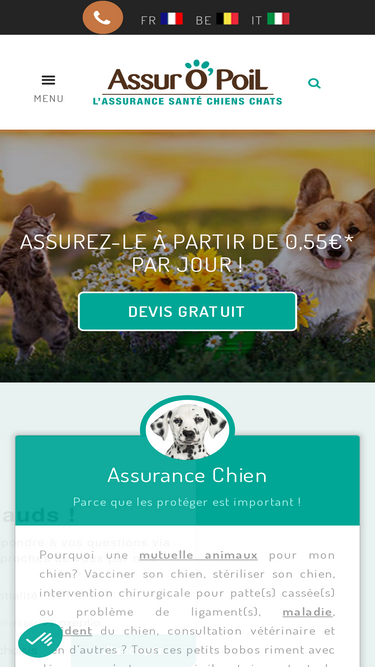 77%Assur O’Poil assure votre chien ou votre chat que vous habitiez en France métropolitaine (y compris en Corse), en Italie et à Monaco.
