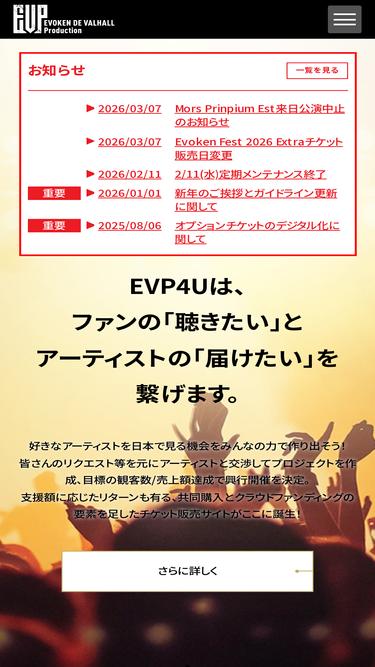 100%Evoken de Valhall Production.が運営するチケット販売サイトEVP4Uの利用規約