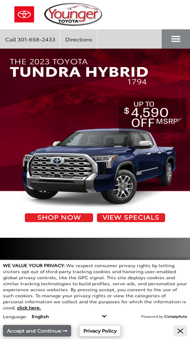 70%¡Visita Younger Toyota en Hagerstown, MD donde hablamos Español! Antendemos areas cerca de Hagerstown, MD; Martinsburg, WV; Chambersburg, PA; & Frederick, MD.