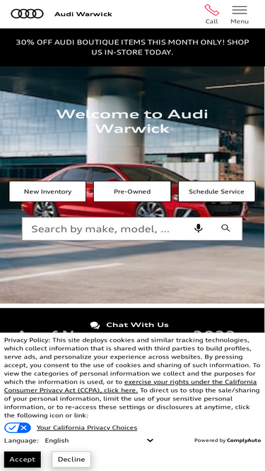 Find our Warwick, RI Audi dealership today. View hours, get directions, and visit us now—your new Audi is just around the corner, don’t miss out!