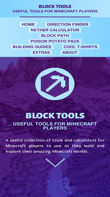 78%a small collection of useful tools and calculators for minecraft players to use as they build and explore their amazing minecraft worlds. nether calculator, direction finder, block path, poison potato pack and more!