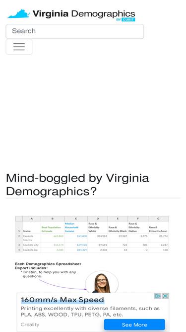 80%need virginia demographics? get current population, race, age, income & poverty statistics for virginia from the us census bureau.