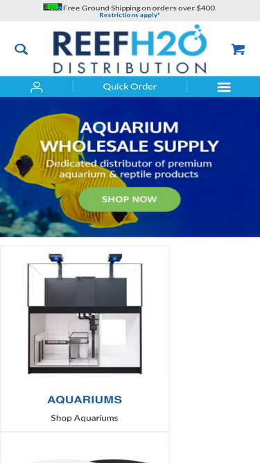94%reefh2o - wholesale aquarium and reptile supply. selling to qualified dealers in the pet industry across the country. we carry a huge inventory of products. reefh2o has no minimum order, free freight on order of $400 or more of qualified products, and same day ship out. pumps, protien skimmers, aquarium lighting, test kits, additives, salt, substrate, leds, filters, decorations, aquariums, and more! aqua illumination, ecoxotic, current usa, api, hikari, hydor, red sea, lee's, zoo med, ocean nutrition, brightwell, continuum, aqua ultraviolet, emperor aquatics, cpr, salifert, seachem, caribsea, tropical science, danner, little giant, reeflo, blue line, hbh, dainichi, ...............