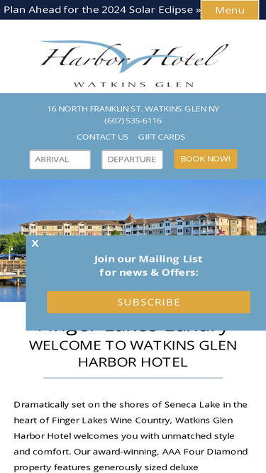 36%The Watkins Glen Harbor Hotel is a 4-season luxury resort nestled on the shores of Seneca Lake in New York's Finger Lakes region.