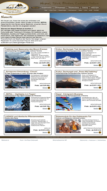 90%wir bieten kulturreisen und trekking in kleingruppen oder individuell. ganz besondere programme für nepal, tibet, bhutan sowie alle länder des himalaya. buddhistische klöster, touren in abgelegene regionen, schöne hotel-resorts im everest gebiet und im annapurna-gebirge sowie absolute geheimtipps und erfahrene reiseleiter machen unsere reisen in diese länder so außergewöhnlich.