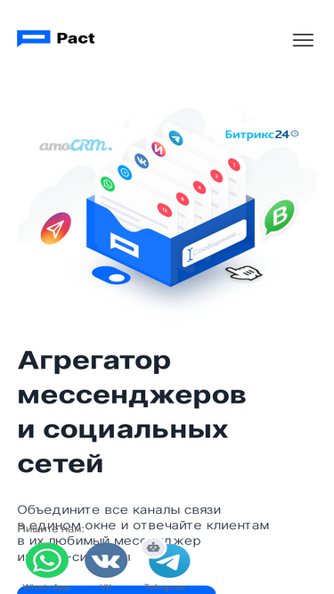 92%Подключите Telegram к amoCRM с помощью Pact.im: автоматизируйте сбор заявок, синхронизируйте чаты и управляйте клиентами в единой системе. Настройка за 5 минут без программиста.