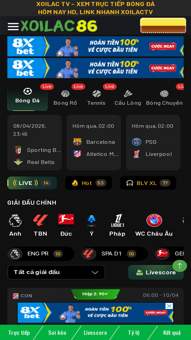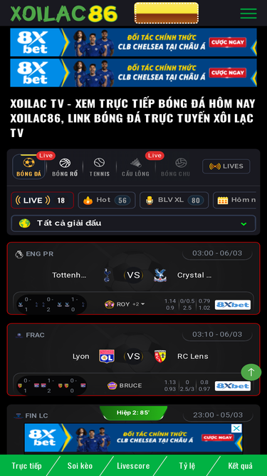 100%Xem trực tiếp bóng đá hôm nay tại Xoilac86 TV. Link bóng đá trực tuyến XoilacTV chất lượng cao dành cho fan xem tructiepbongda miễn phí cùng Xôi Lạc.