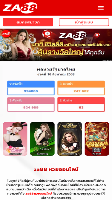 85%สนุกกับ za88 หวยออนไลน์ ครบทุกหวย หวยไทย หวยลาว หวยฮานอย หวยหุ้น และยี่กี ระบบทันสมัย ฝากถอนอัตโนมัติ อัตราจ่ายสูง จ่ายหนัก ไม่มีเลขอั้น