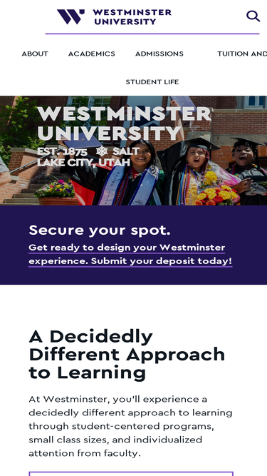 100%At Westminster University, you'll experience a decidedly different approach to learning. Find the perfect undergraduate or graduate program for you today.