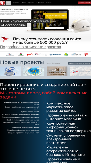 97%создание корпоративных сайтов для крупного бизнеса с 1999 года. артус — компания №1 в рейтинге интернет-агентств, работающих на созданием сайтов крупнейших компаний россии и мира по версии cms magazine. собственная методика разработки веб-сайтов в срок. создать эффективный сайт в артусе можно быстро и качественно в москве. специалистам агентства артус можно доверить решение любых маркетинговых задач.