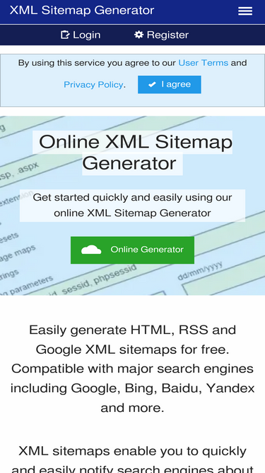76%generate xml sitemaps compliant sitemaps.org file for free. the tool will index your page quickly and easy. xml sitemap files compliant with google standards.