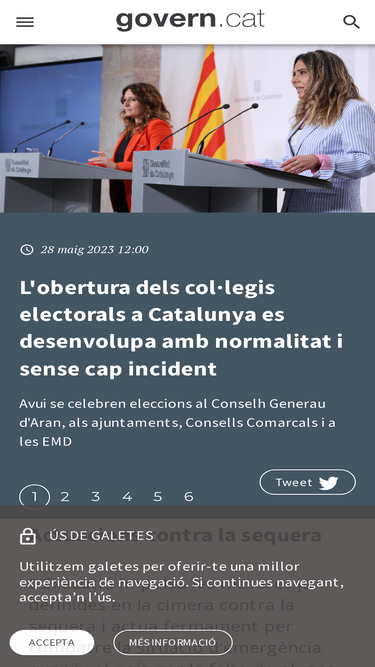 Web del Govern de la Generalitat de Catalunya que difon el dia a dia de l'executiu català i els seus posicionaments polítics. Notícies · Acords de govern · Agenda · Fotos i vídeos · Emissions en directe · Rodes de premsa · Galeries de fotos i vídeos.