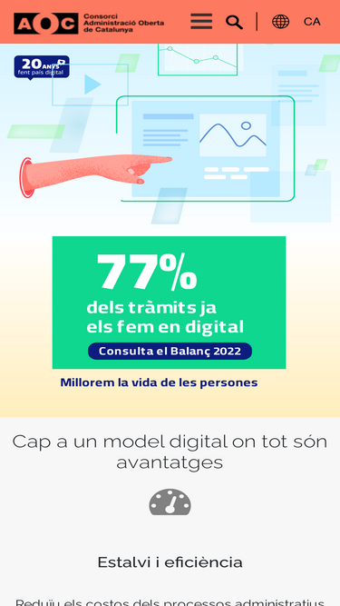 84%20 anys fent camí cap a un país digital. Coneix l’AOC Identifica’t en els teus tràmitsde manera fàcil i segura Obté una identitat digital per realitzar tràmits i gestions amb les administracions públiques per Internet. Escull la teva modalitat d’idCAT: idCAT Mòbil Per fer tràmits amb les administracions públiques de Catalunya. Més informació Alta ràpida […]