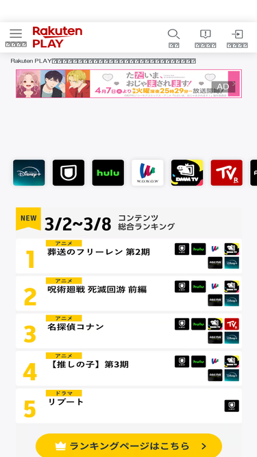 80%作品が一覧になっているページです。お気に入りの配信コンテンツを見つけよう!Rakuten PLAY経由で各サブスクに加入していただくと、楽天ポイントがもらえてお得に!