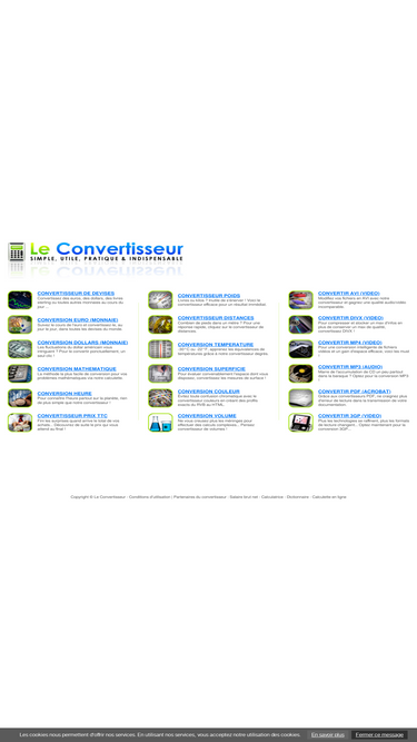 convertisseur universel. pour convertir euros, dollars, distances, temperature, superficie, avi, divx, mp3, mp4, pdf ...