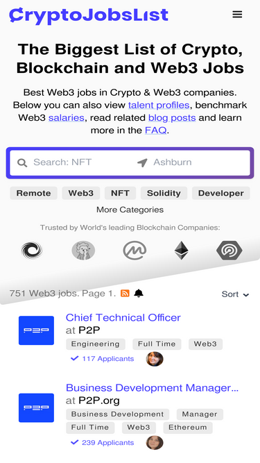100%Page 6. New Crypto Jobs, Web3 Jobs and Blockchain Jobs on CryptoJobsList — the leading site to find and post jobs. Connect with companies hiring in a few clicks and begin your next experience in the industry. Updated daily!