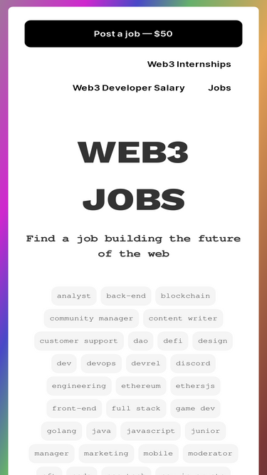 89%Find or Post Web3 Jobs Today ✅ New Web3 Blockchain, Developer, and Designer Jobs handpicked every week. Join other creators building the new web!