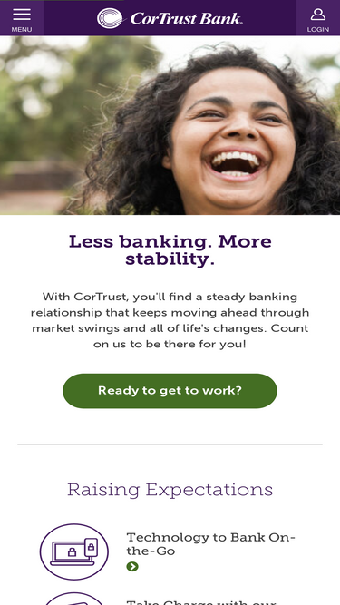 98%At CorTrust Bank, you're more than a customer. You're family. Our Midwestern roots combine personalized service and the latest technology to empower you.
