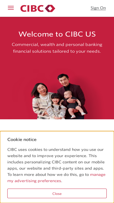 87%cibc u.s. provides tailored commercial and personal banking services, private wealth management and small business financial solutions from coast to coast. we invest in businesses, people and communities, striving to build trusting and enduring relationships by putting our clients at the center of all we do.