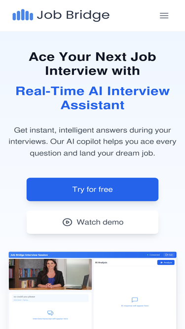 87%Get instant, intelligent answers during your interviews. Our AI copilot helps you ace every question and land your dream job.