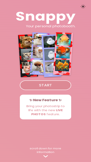 92%Take instant photobooth-style photos online. Customize with over 100 frame colors, add stickers and frames, and download high-quality photo strips instantly.