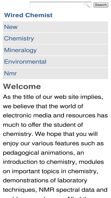 90%the wired chemist is an online collection of scientific resources, including databases, tutorials and animations.